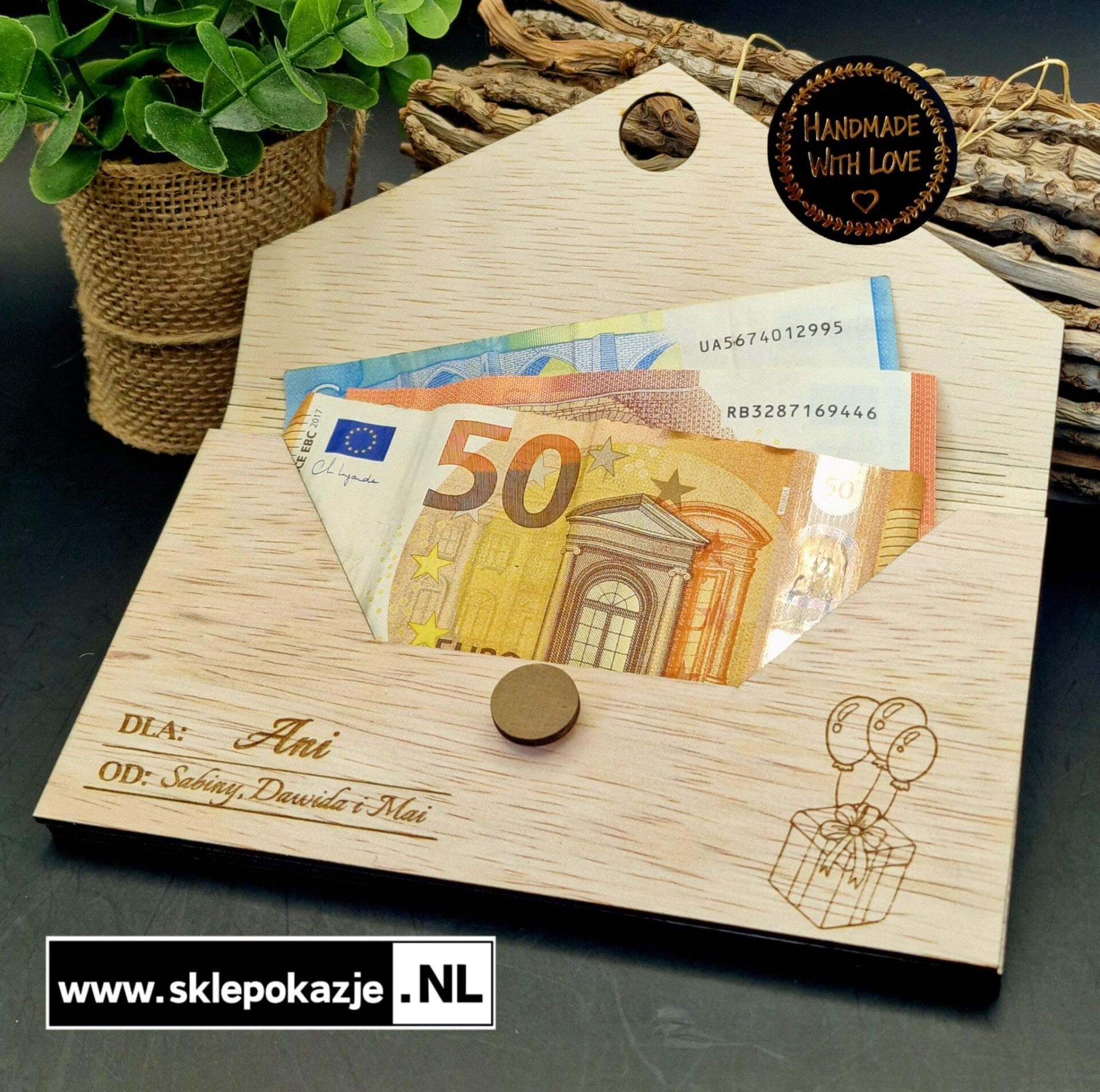 KOPERTA OTWIERANA Z GRAWEREM (Z Twoimi życzeniami i miejscem na gotówkę)