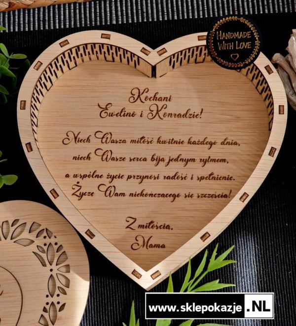 DREWNIANE PUDEŁKO W KSZTAŁCIE SERCA z personalizacją na różne okazje