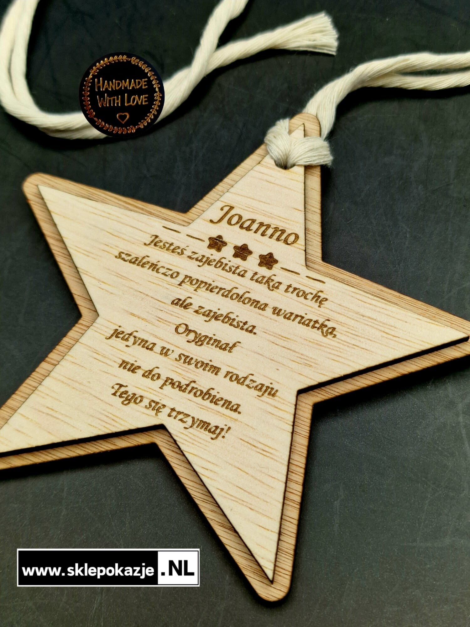 Napisz dowolną krótką treść, którą mamy wygrawerować po środku zawieszki. Patrz przykład na zdjęciu.